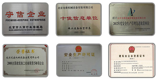 北京龍?zhí)C械設備安裝有限公司始創(chuàng)于1996年,是具有20多年機械設備租賃、安裝、運輸的專業(yè)公司,具有起重設備安裝工程專業(yè)承包壹級資質。我公司先后被評為:北京市建筑起重機械租賃企業(yè)資信等級壹級單位、2012年度安全生產管理先進租賃單位、2012、2014年建筑機械租賃品牌單位、2012全國建筑施工機械租賃50強企業(yè)、2010-2011、2012-2013年度北京市建筑機械租賃企業(yè)設備管理優(yōu)秀單位、北京市建筑機械優(yōu)秀租賃企業(yè)。公司現擁有各種各類機械設備200余臺(輛),固定資產達到6000萬余元,其中塔式起重機、施工升降機200余臺,汽車起重機2臺,運輸板車5輛,年出租率95%以上,可以提供各種租賃、安裝、維修服務。